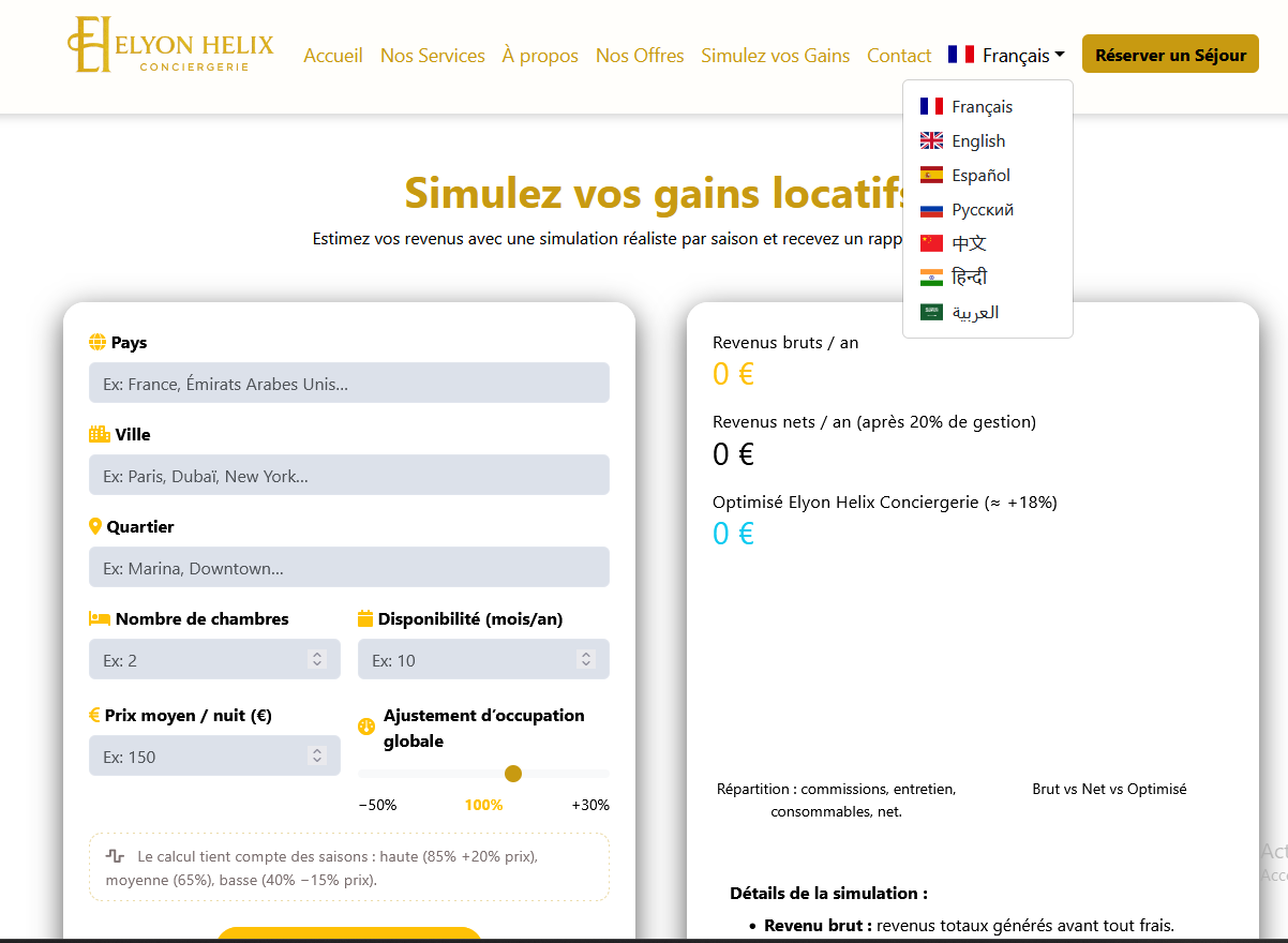 Résultats & bénéfices pour Elyon Helix Conciergerie :