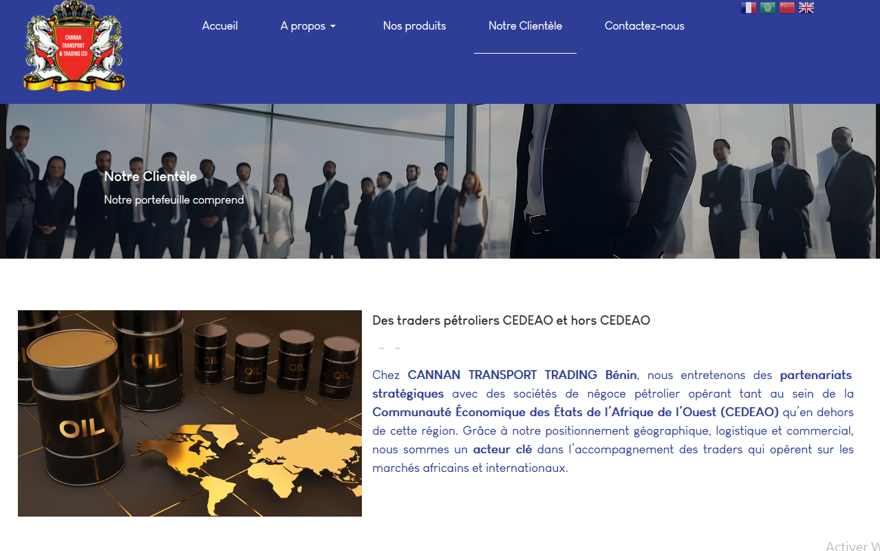 Dans un secteur stratégique du transport et du commerce international, MA+ Corporate a conçu un site web multilingue pour Cannan Transport Trading, reflétant l’expertise du groupe et son rayonnement panafricain. La solution digitale offre une vitrine moderne, structurée et fiable pour promouvoir les activités dans le transport, négoce, agro‑industrie et énergie.